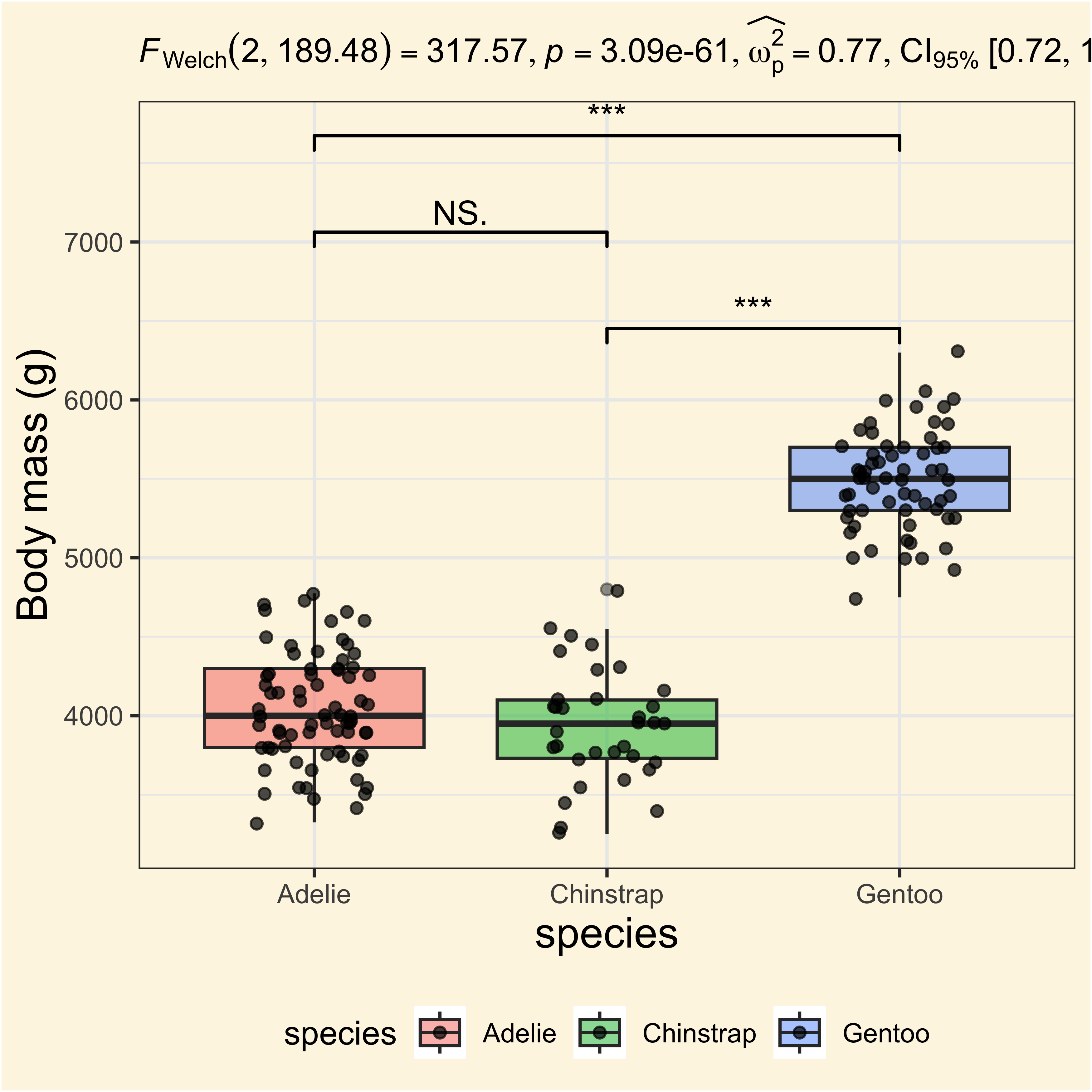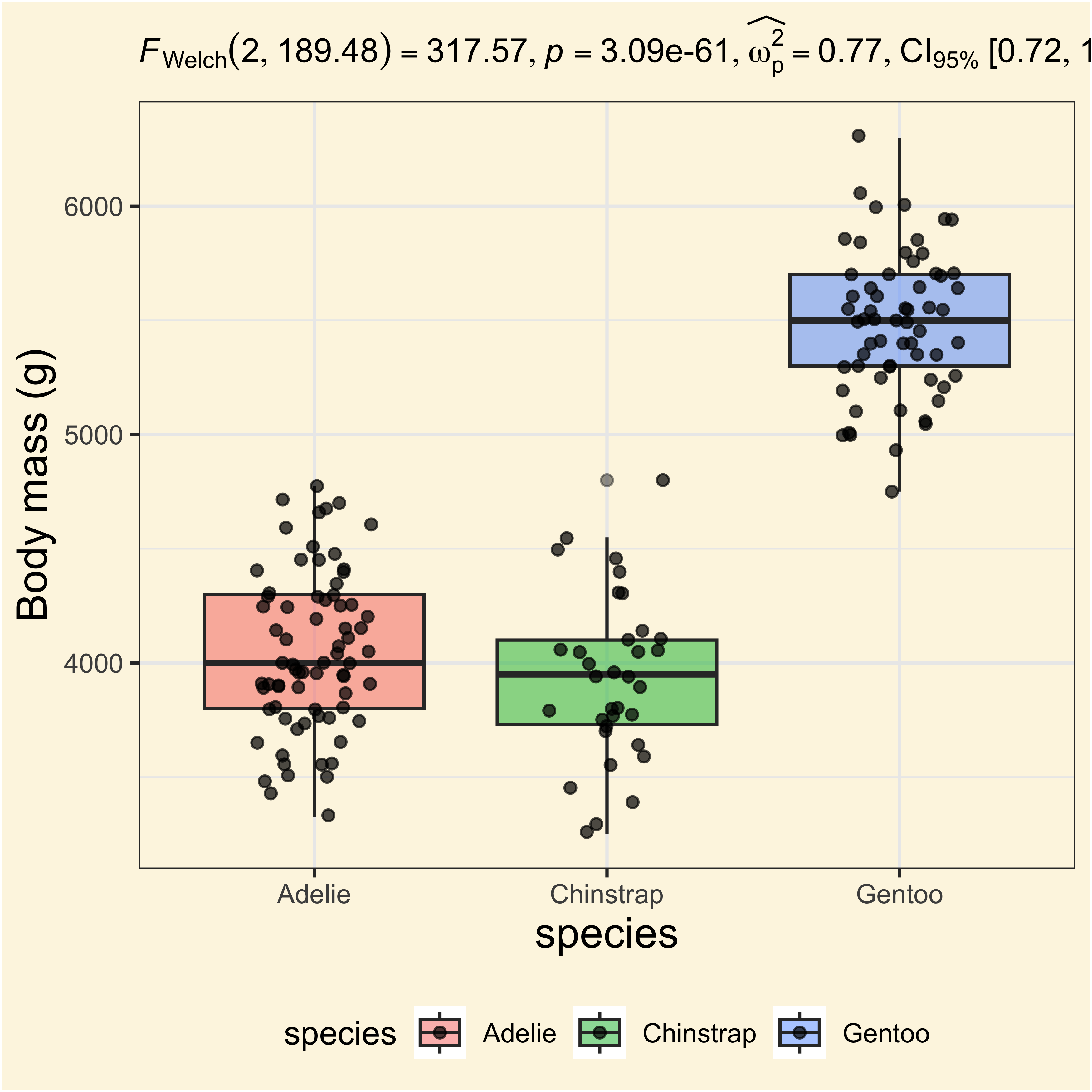 statsExpression package:anovatbl <- oneway_anova(data = penguins, x = species, y = body_mass_g)
