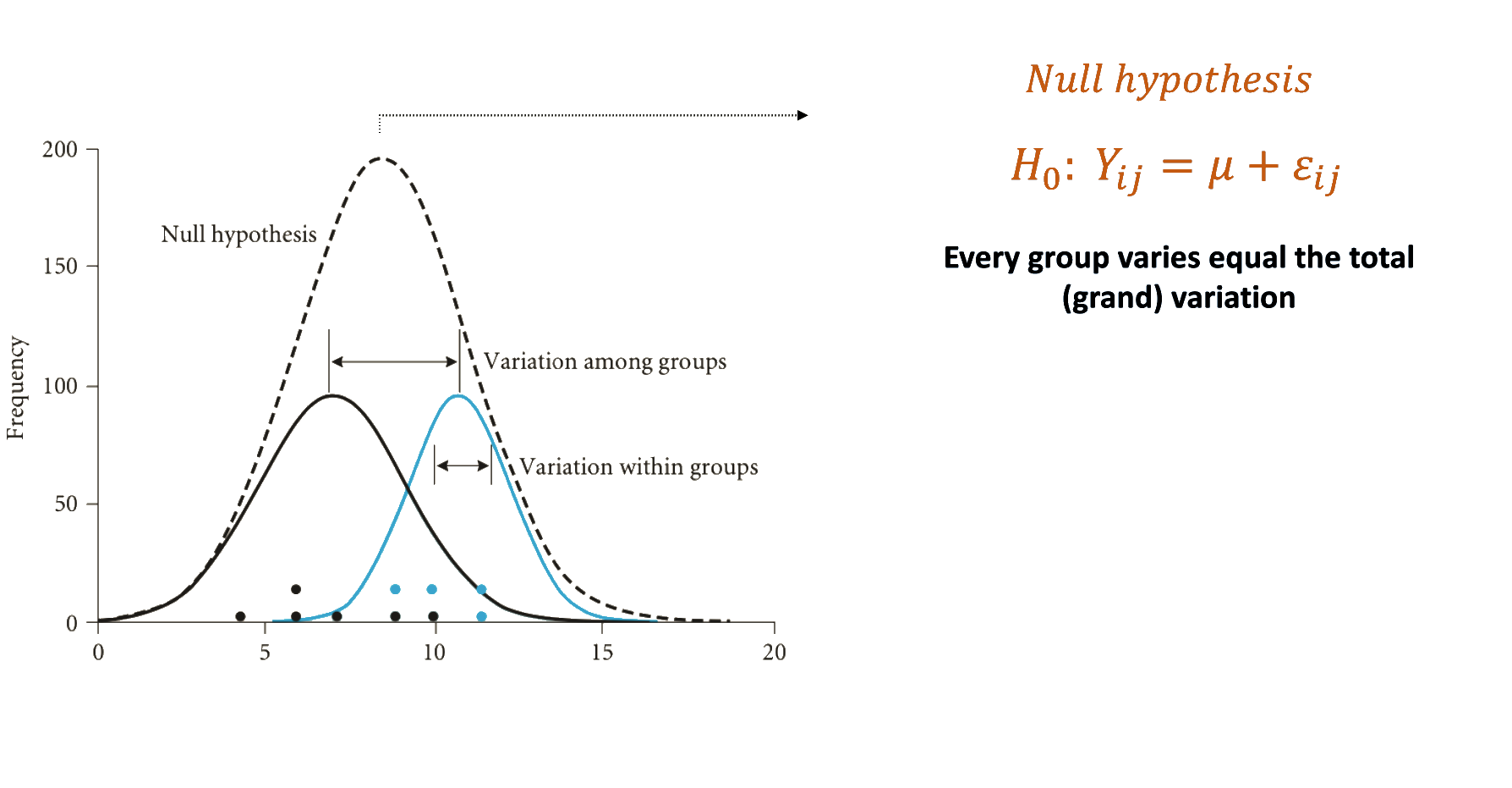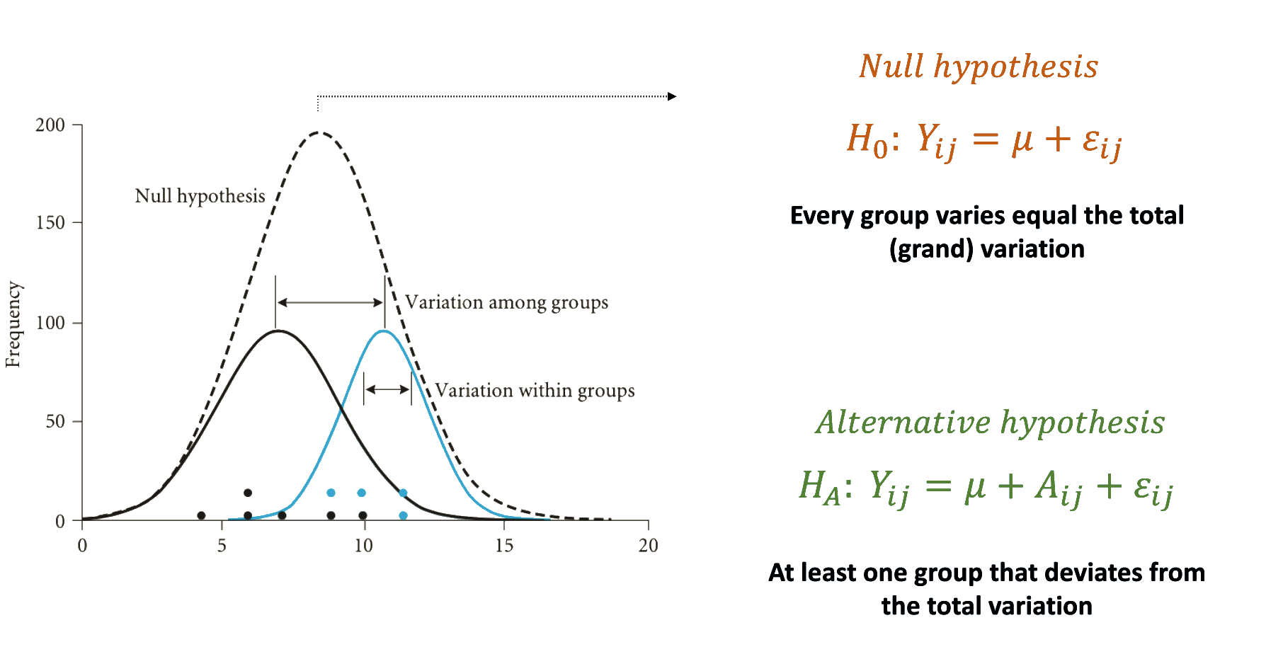 When comparing a continuous variable across two or more groups. The question it tries to solve is: “is there a group different from the others?”