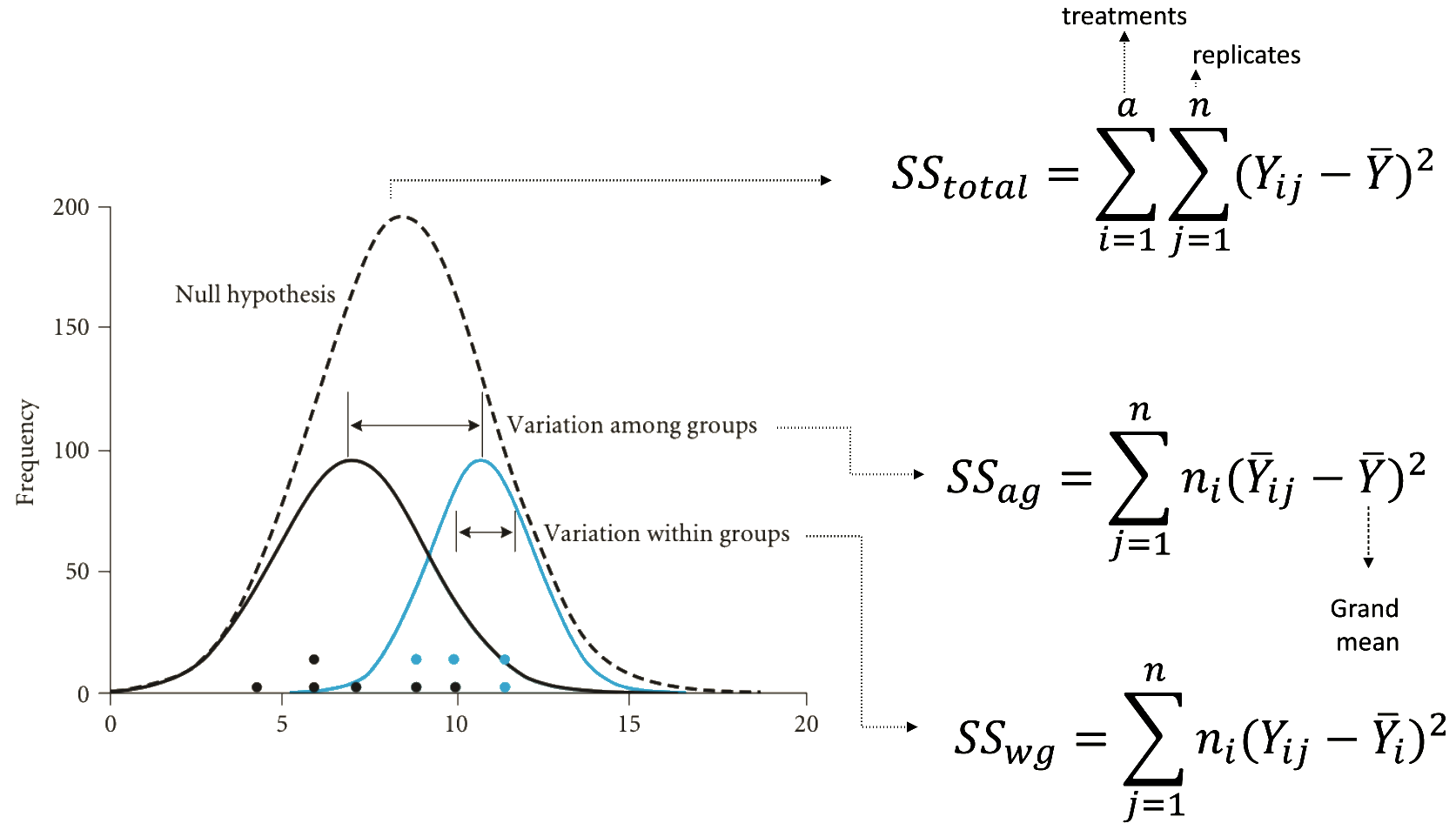 aov() function:anovamodel <- aov(data = males, body_mass_g ~ species)aov() function: Df Sum Sq Mean Sq F value Pr(>F)
